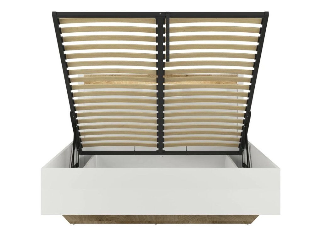ALAMEDA postel LOZ/160 B bílý lesk/dub westminster VČETNĚ ROŠTU a BEZ MATRACE
