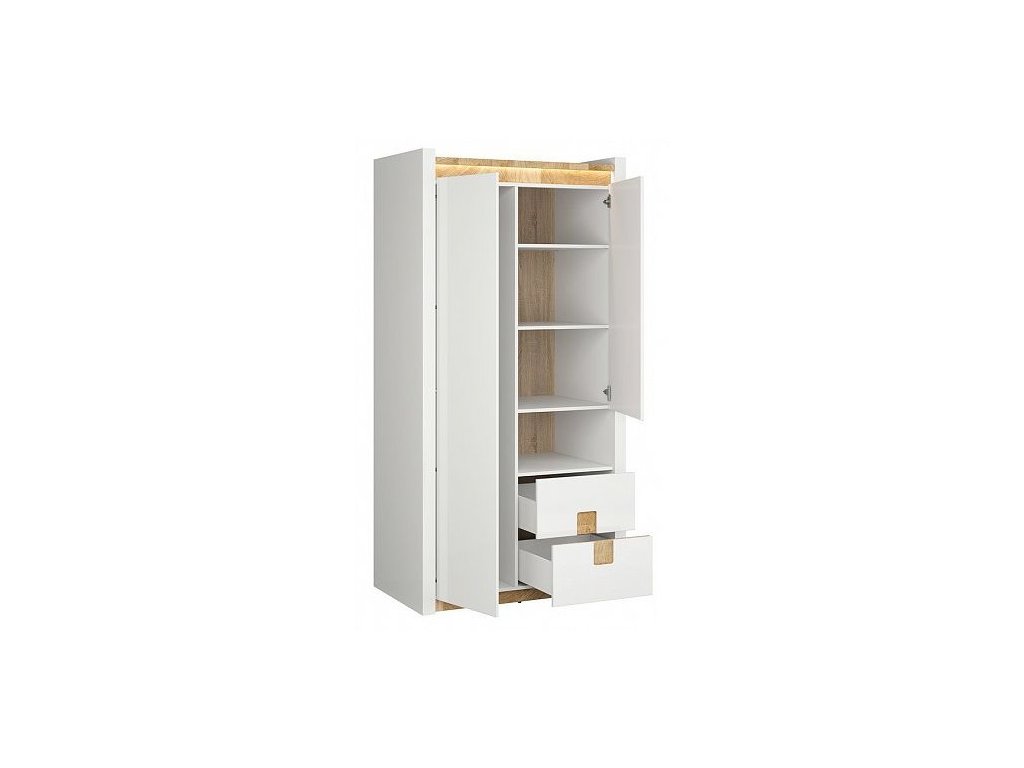 ALAMEDA skříň SZF2D2S bílý lesk/dub westminster