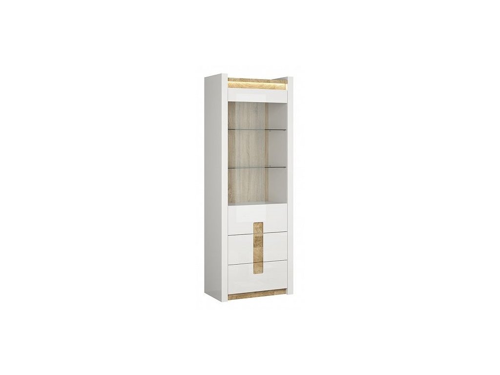 Vitrína ALAMEDA REG1W2S je velmi moderní a díky barevné kombinaci bílý lesk/dub westminster atraktivní.