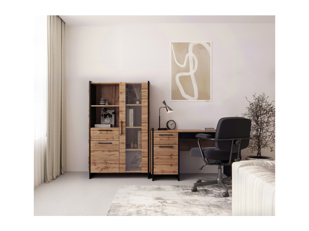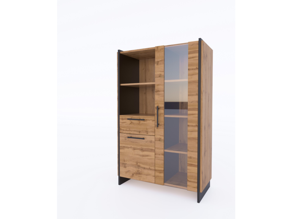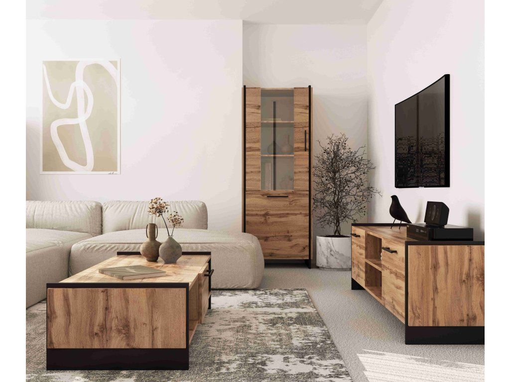 AMINI nízká vitrína 1d1w1s dub wotan/černá