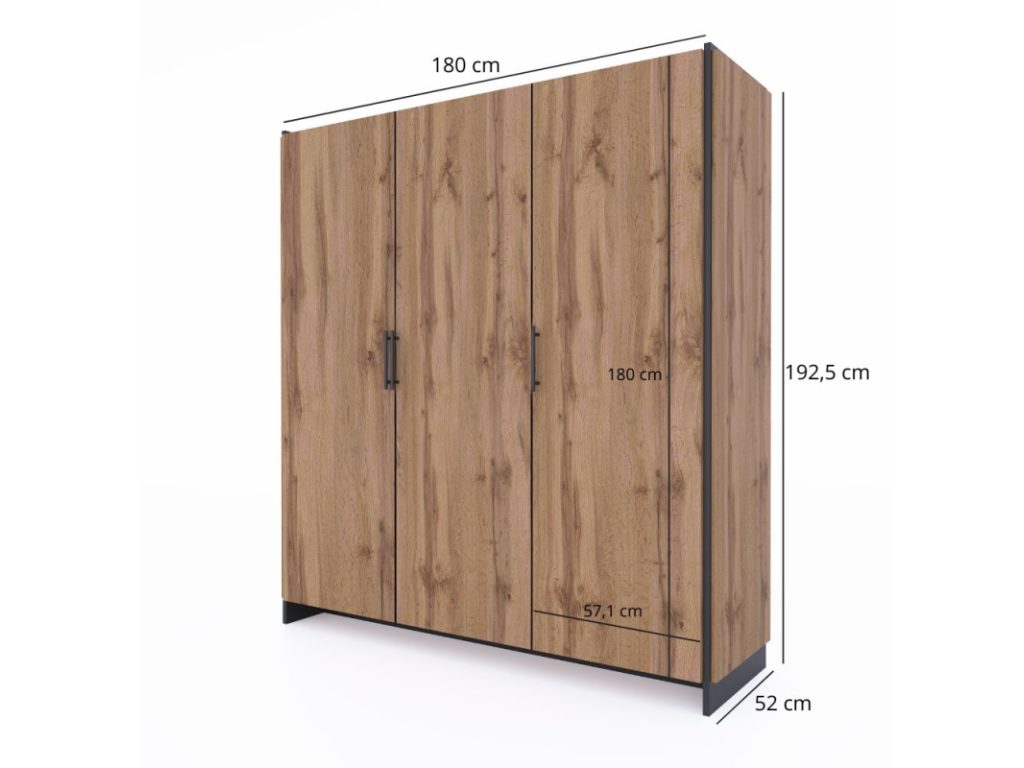 AMINI skříň 3d dub wotan/černá, šíře 180 cm
