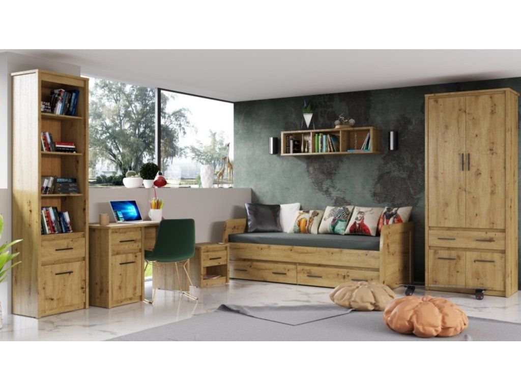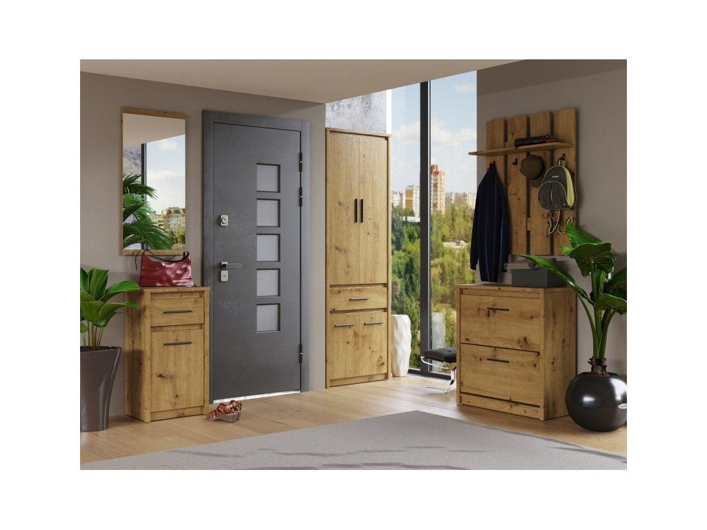 Praktická a kompaktní komoda z řady Ayson je ideálním řešením do prostor, kde záleží na každém centimetru. Díky svému štíhlému designu v oblíbeném dekoru dub artisan se skvěle hodí jako doplňkový úložný prostor do předsíně, ložnice nebo pracovny.
