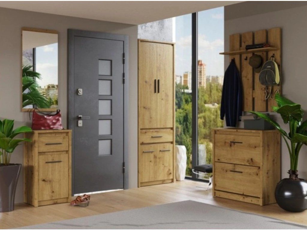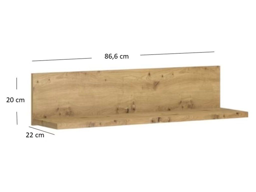 Dekor: Stejně jako u ostatních dílů kolekce je použit dub artisan. Tento dekor se vyznačuje výraznou texturou, suky a přírodními prasklinami, které polici dodávají "syrový" a autentický vzhled dřeva.