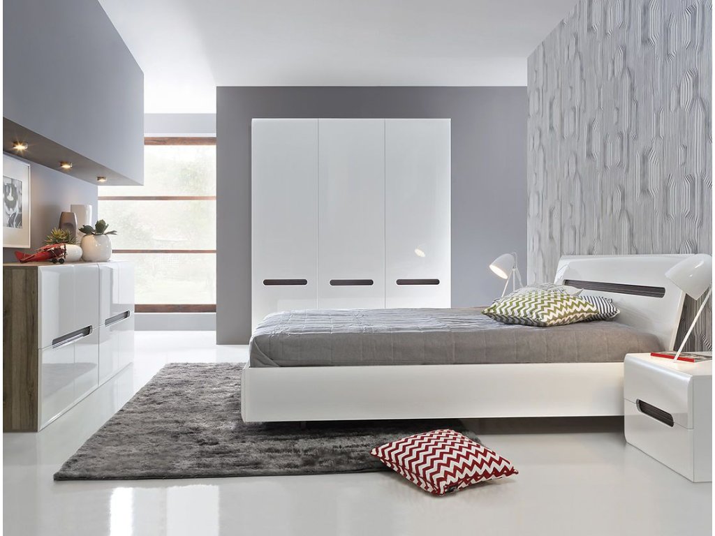 Postel Azteca Trio LOZ/160 je v kombinaci tónů bílá/bílý lesk. Tato barva je velice svěží a hodí se zejména do moderního interiéru. Jedinečný design, který se vyznačuje vyšším čelem s výměnnými lištami ve 3 různých barvách (wenge magia a oboustranné lišty bílý lesk/černý lesk).