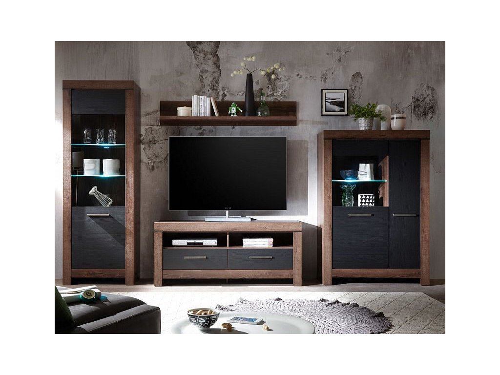 BALIN REG1W vitrína dub monastery/dub černý (včetně LED osvětlení)