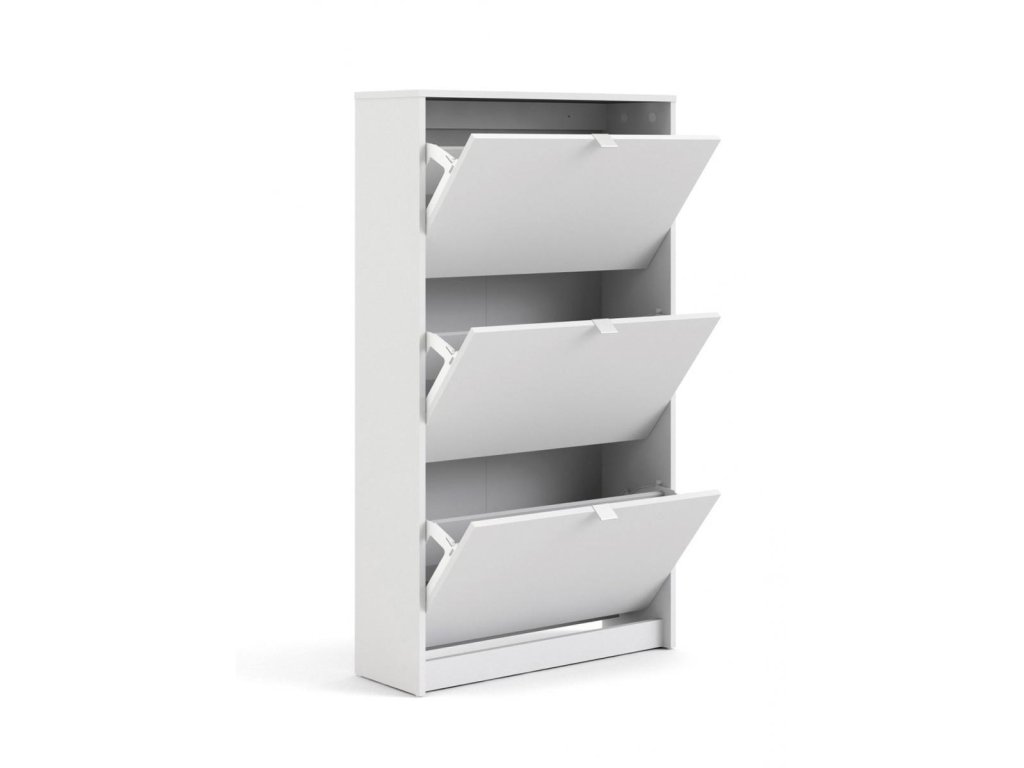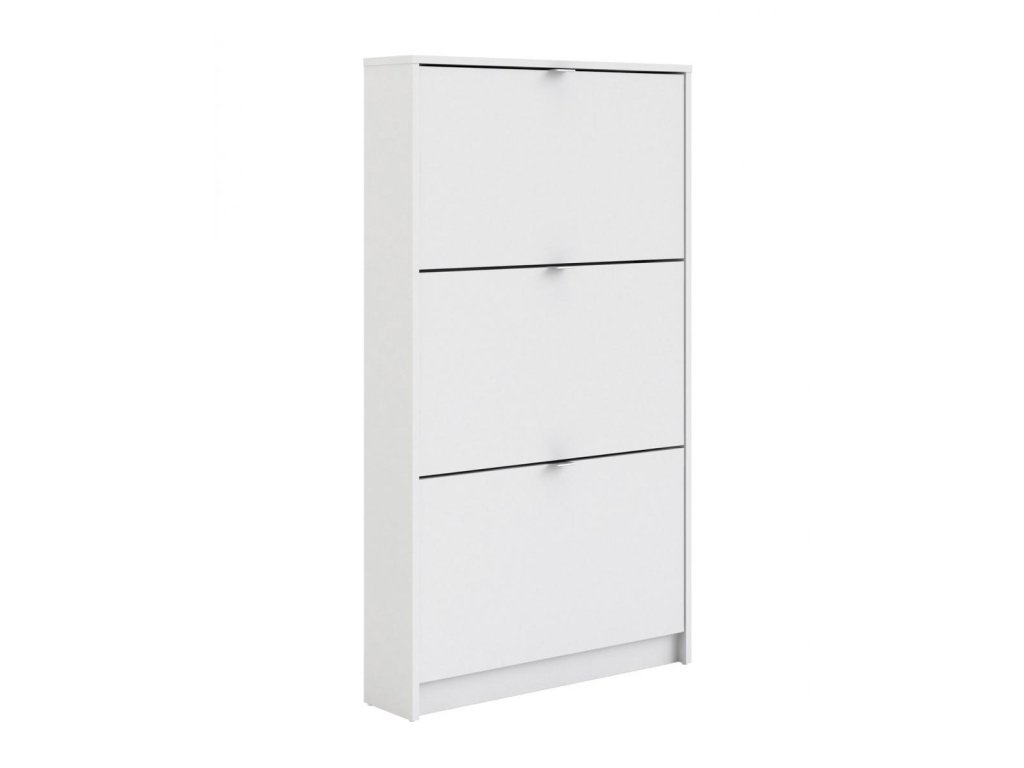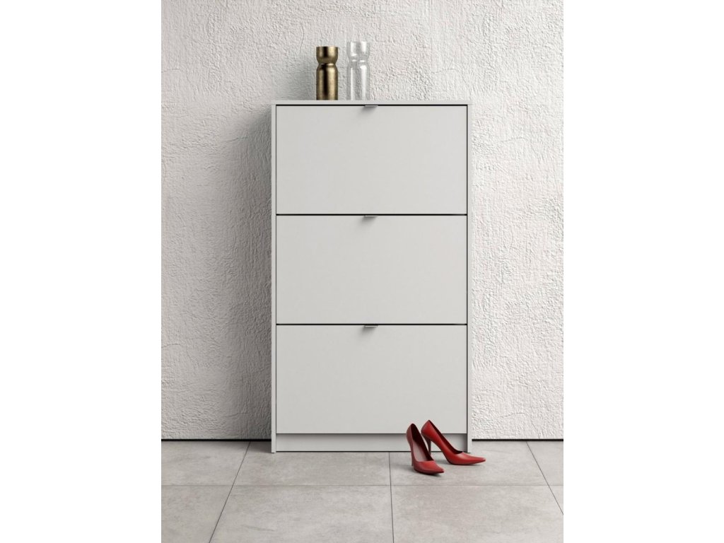 Zachraňte svou předsíň před nepořádkem a pořiďte si botník Flap s výklopnými dvířky. Botník nabízíme v několika variantách, které můžete různě kombinovat a jen na Vás a Vašem prostoru záleží kolik si těchto botníků koupíte a jak si je uspořádáte. V tomto případě se fantazii meze nekladou. Pro inspiraci jsou přiloženy fotografie s vyobrazením, jaké jsou možnosti sestavení. Díky svému provedení pojme botník Flap opravdu velké množství bot. Do každé výklopné přihrádky můžete ukládat boty ve dvou řadách.Vaše předsíň pak bude stále uklizená a zakopávání o boty se stane minulostí. Botník je vyrobený z lamina, které je odolné a snadné na údržbu a nabízíme ho v několika barevných provedeních. Je dodávaný v demontu a součástí balení je montážní návod včetně všech spojovacích prvků. Cena je uvedena za 1 kus botníku Flap se třemi výklopnými přihrádkami. Vyobrazené doplňky a dekorace nejsou v ceně.