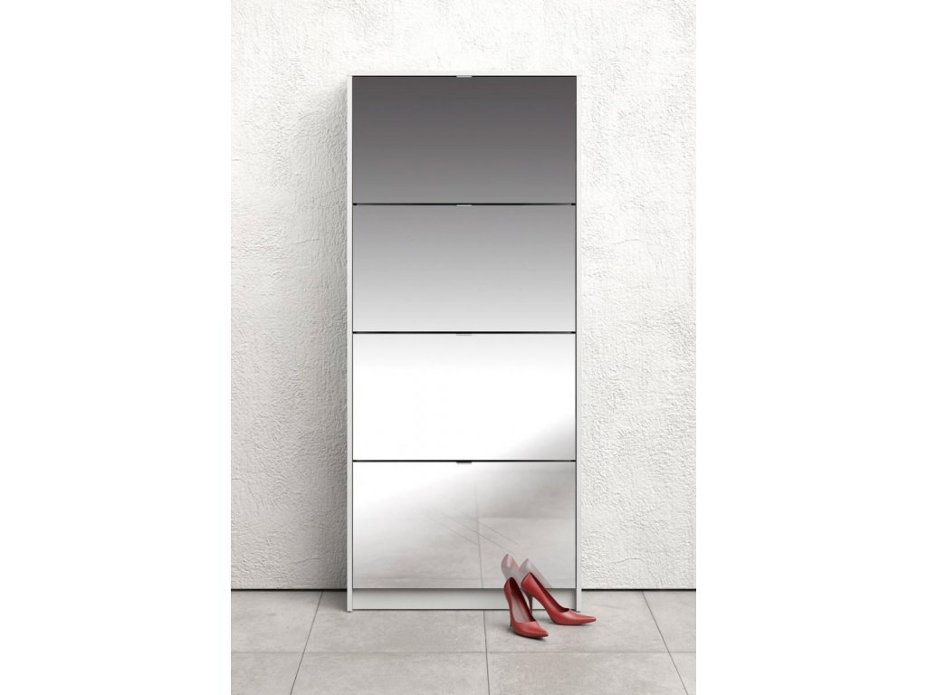 Po prostorném botníku touží každý milovník bot i početná rodina. Boty se hromadí v předsíni, vzniká chaos a zakopávání o boty je na denním pořádku. Zachraňte svou předsíň před nepořádkem a pořiďte si botník Flap s výklopnými dvířky. Vaše předsíň bude uklizená a zakopávání o boty se stane minulostí. Díky svému provedení pojme botník Flap opravdu velké množství bot. Do každé výklopné přihrádky můžete ukládat boty ve dvou řadách. Botník je vyrobený z lamina, které je odolné a snadné na údržbu a na dvířkách botníku je zrcadlo, které je v předsíni nepostradatelné při úpravě zevnějšku před odchodem z domu. Zracadla také každou tmavou předsíň prosvětlí a opticky zvětší. Botník je dodávaný v demontu a součástí balení je montážní návod včetně všech spojovacích prvků. Cena je uvedena za botník Flap se čtyřmi výklopnými přihrádkami. Vyobrazené doplňky a dekorace nejsou v ceně.