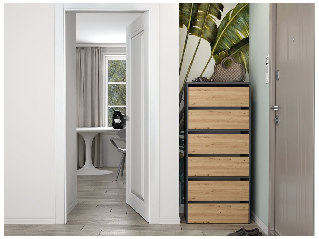 Moderní botník Modis bez úchytek je ideální volbou do každé předsíně. Pečlivé zpracování a elegantní linie dodají vaší předsíni styl i praktický úložný prostor. Botník je modulární - můžete jej prakticky libovolně rozšiřovat. Nábytek je vyroben z vysoce kvalitního lamina, které je snadno udržovatelné a odolné proti oděru.