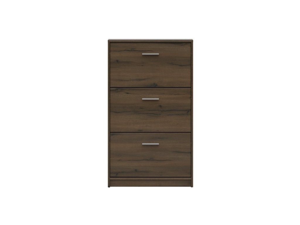 Botník se v dnešní době stal nepostradatelnou součástí našich domovů. Nabízí dostatečný prostor pro obuv, kterou budete mít na jednom místě. Zvolit si můžete například z botníku NEPO PLUS. Botník NEPO PLUS je vyroben z kvalitního lamina, které se snadno udržuje. Síla lamina je 1,6 cm. Na výrobu byl použit velmi oblíbený dekor dub ušlechtilý. K dispozici vám budou tři boxy s výklopnými dvířky, pro lepší přehled o uložené obuvi. Součástí jsou také úchyty, jež zajistí snadnou manipulaci při otevírání. Úchytky jsou z tvrzeného plastu. Pro zajištění bezpečného užívání botníku, doporučujeme připevnit ke zdi. Dodáváno v demontu.