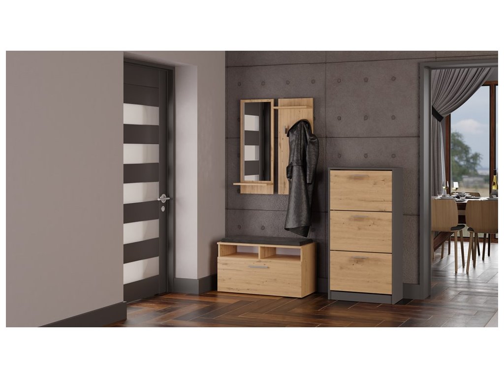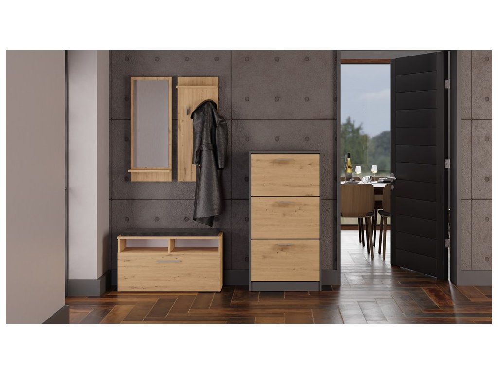 Nadčasový botník Pura s praktickými výklopnými dvířky je ideální volbou do každé předsíně. Pečlivé zpracování a minimalistický design dodají vaší předsíni styl i funkční úložný prostor. Nábytek je vyroben z vysoce kvalitního lamina, které je snadno udržovatelné a odolné proti oděru, dlouhou životnost nábytku zajišťují hrany zakončené ABS materiálem.