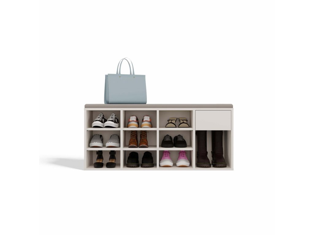 Nadčasový botník Tazin představuje praktické a stylové řešení pro každou předsíň – nabízí pohodlné sezení a zároveň dostatek úložného prostoru pro vaše boty i drobnosti. Nábytek je vyroben z odolného a snadno udržovatelného lamina.