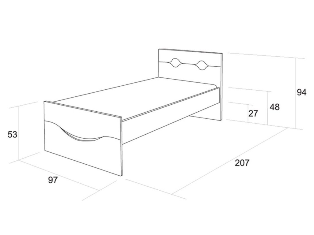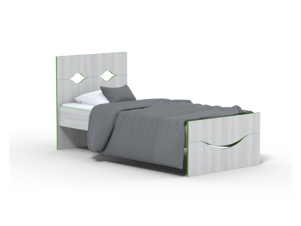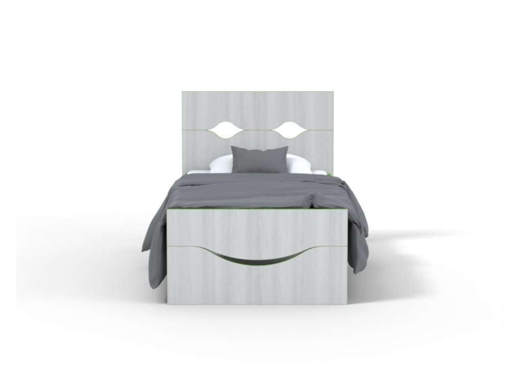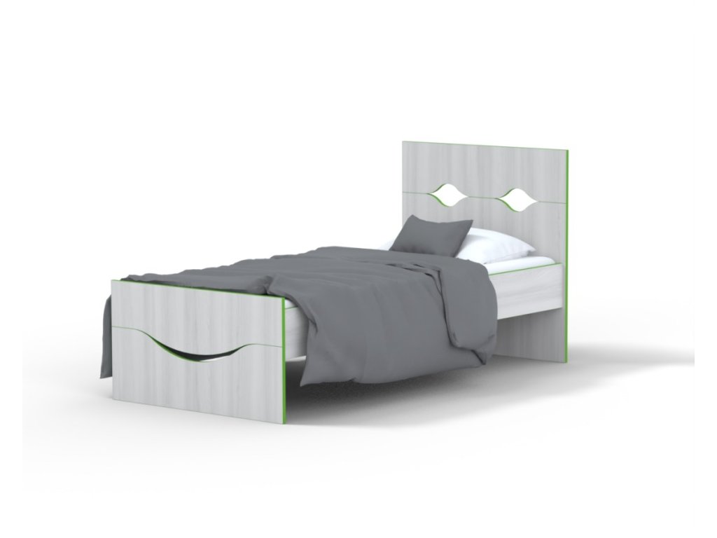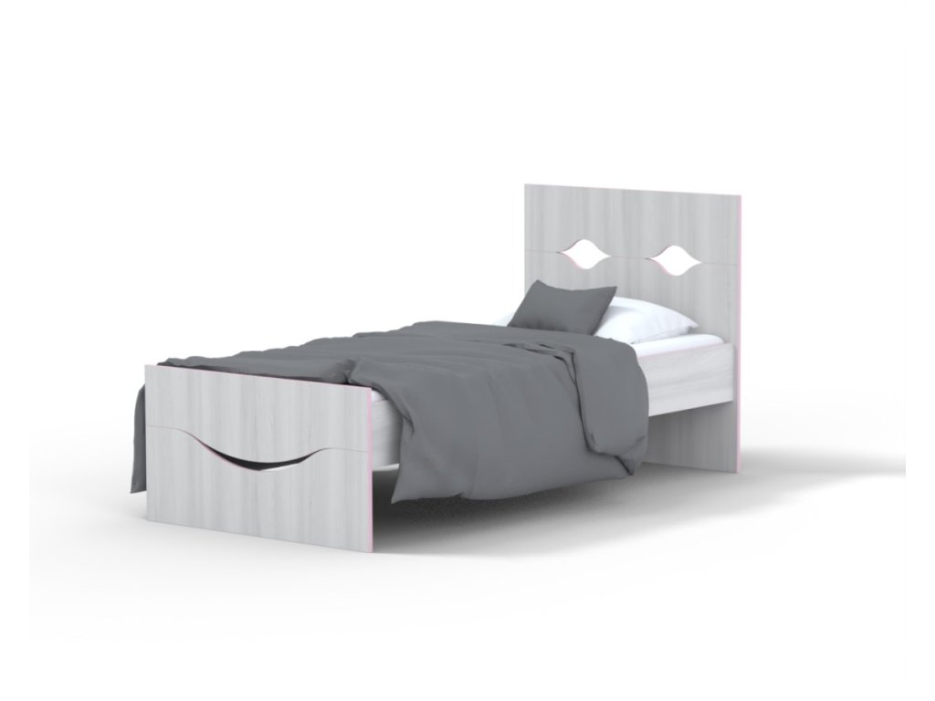 představuje stabilní postel s jednoduchými liniemi
