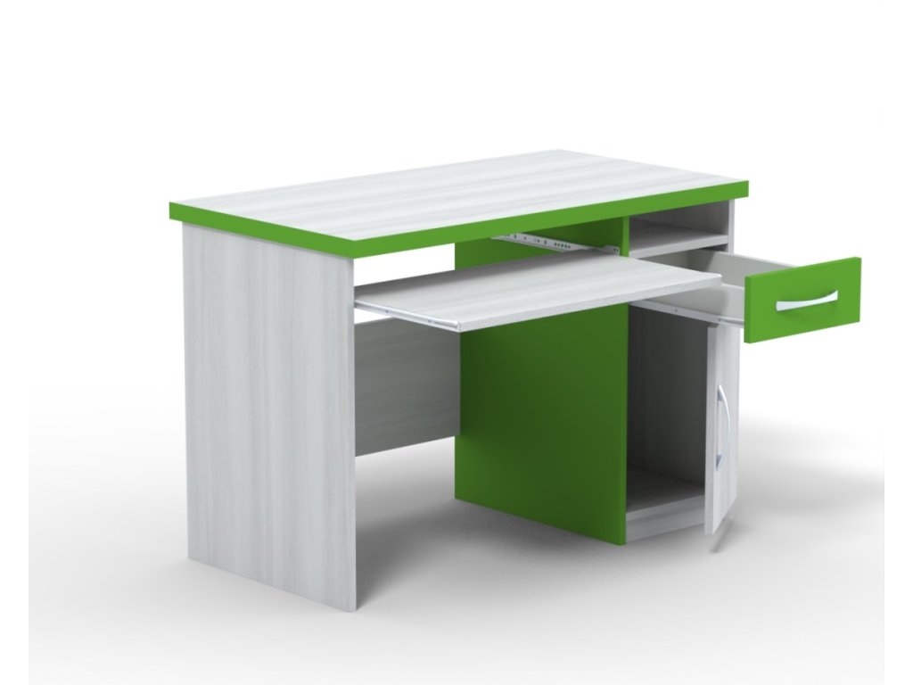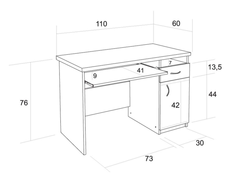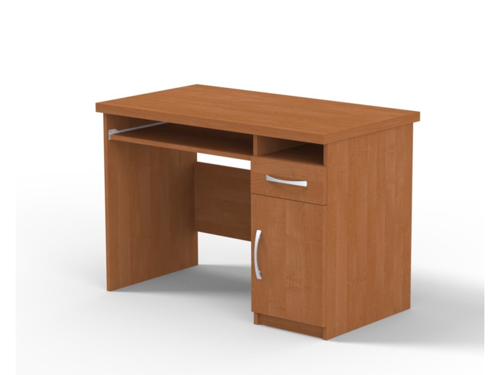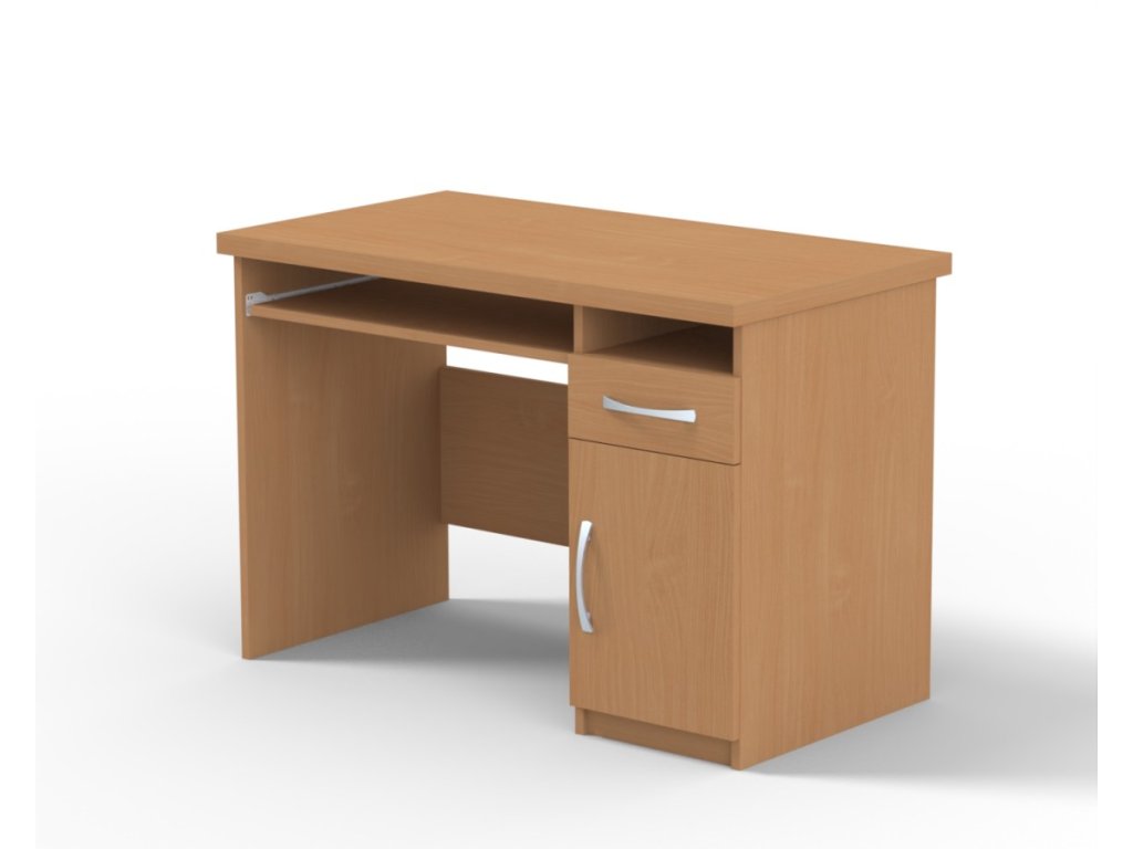 stůl obsahuje výsuv na klávesnici, zásuvku a úložnou skříňku