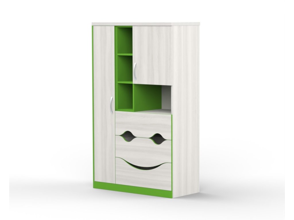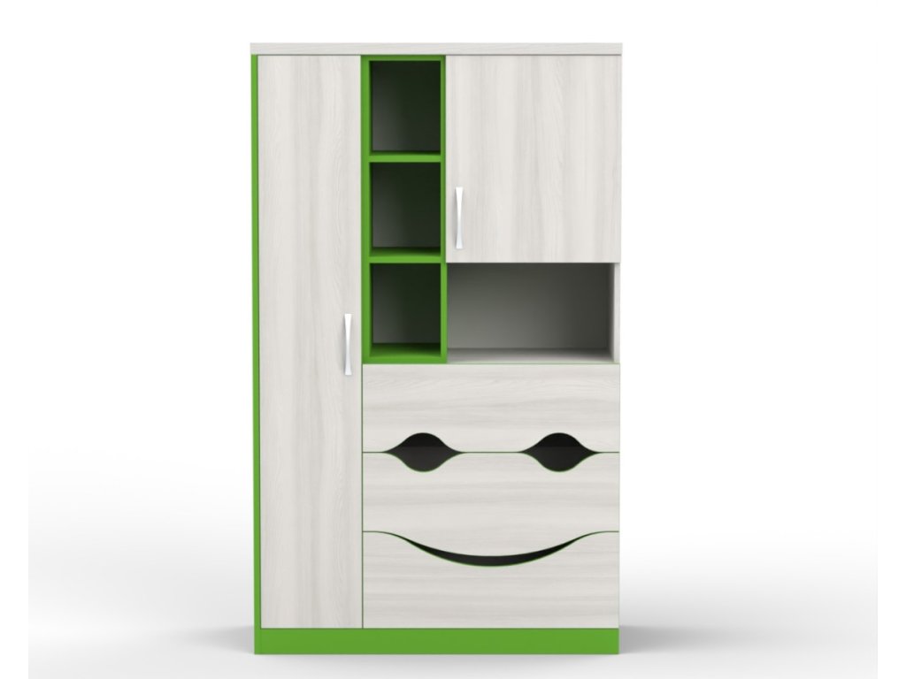 má spousty úložného místa a poliček do kterých se vejdou nejen věci ale i knížky, hračky a různé drobnůstky