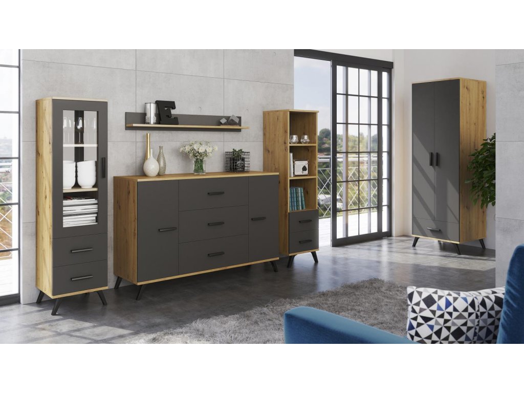 Roky Grafit je moderní bytová sestava v kombinaci 2 módních barev, grafit a dub artisan. Je vyrobena z vysoce kvalitní laminované dřevotřísky tloušťky 18 mm, odolné vůči poškrábání, vlhkosti a vysokým teplotám. Všechny hrany jsou opatřeny ABS lištou, která zajistí trvanlivost a odolnost proti nárazu. Díky této bytové stěně budete mít pohodlný i praktický interiér a také útulné a bezpečné prostředí, ve kterém se každý bude cítit dobře. Veškeré díly, které tato sestava obsahuje, si můžete objednat samostatně. Všechny prvky této sestavy jsou dodávány v demontu. Součástí je montážní plánek včetně všech potřebných spojovacích materiálů. Vyobrazené dekorace nejsou v ceně.