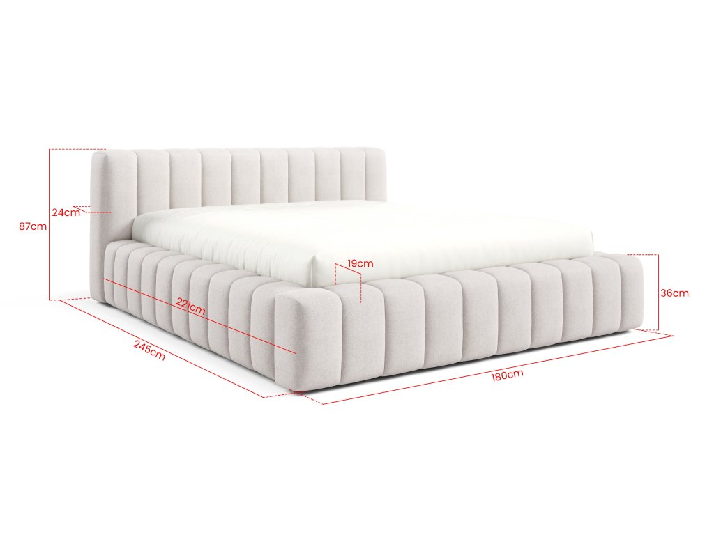 je skvělou volbou pro každého, kdo hledá kvalitní lůžko, které je zároveň velmi estetické, moderní a elegantní. Stabilní konsturkce zajistí klidný spánek. Dřevěný rošt je opatřen plynovými písty, díku tomu se snadno zvedá. Výhodou je velký úložný prostor přístupný od nohou.