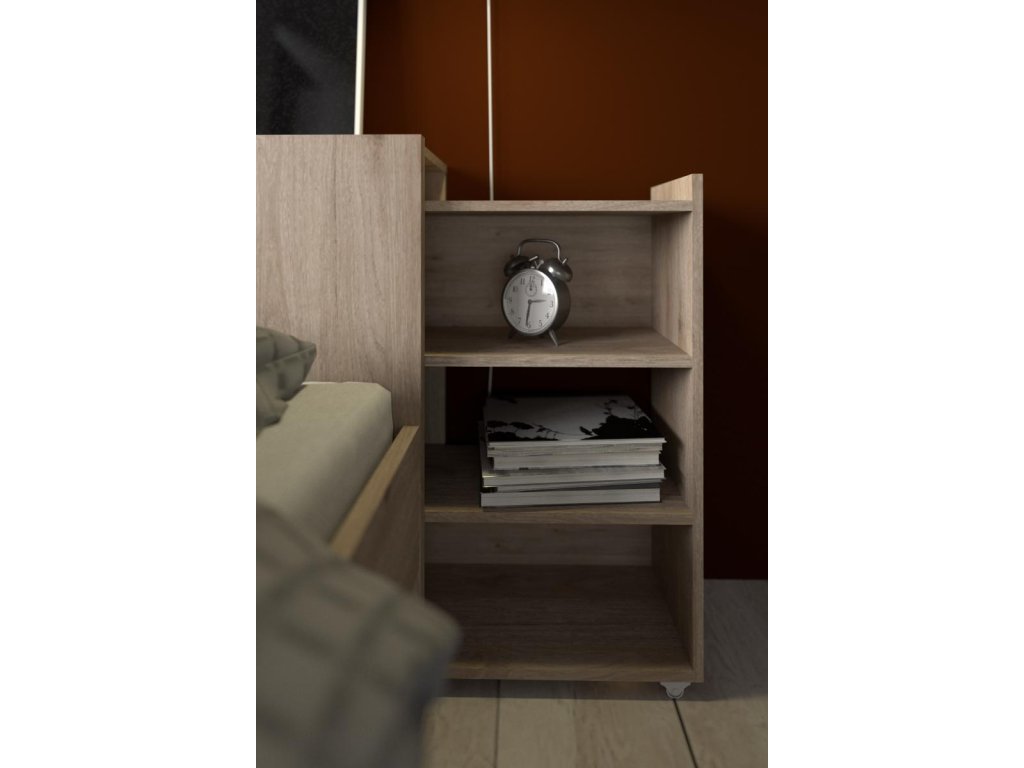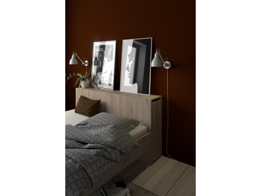 Čelo postele s posuvnými regály síře 140 cm, je skvělým doplňkem k posteli Simplicity 140x200 cm. Se svým skrytým úložným prostorem na knihy, časopisy a všechny další věci, které byste rádi měli po ruce, se stane velmi praktickým a využívaným kusem nábytku. Když jsou regály vysunuté a nahradí Vám noční stolek. Jakmile je zasunete, bude Vaše ložnice stále působit uspořádaně. Pro snadné posunování jsou regály vybaveny kolečky. Čelo je dodáváno v demontu a součástí balení je montážní plánek včetně všech potřebných spojovacích prvků. Vyobrazené dekorace nejsou v ceně.