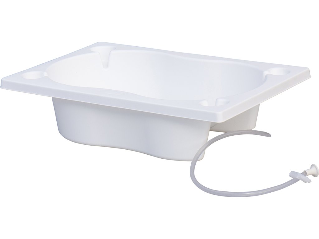 Dětská ergonomicky tvarovaná plastová vanička je vhodná nejen pro ty nejmenší miminka, protože její součástí je vnitřní anatomicky tvarovaná podpora miminka, ve které děťátko leží. Má praktické přihrádky na okrajích pro uložení mýdla nebo houbičky. Vanička má možnost připojení odtokového systému pro vaničky. Vaničku naplněnou vodou nepřemisťujte, vodu z vaničky vždy nejdříve odčerpejte nebo vypusťte. Vanička se velice snadno udržuje a je z nezávadného materiálu.