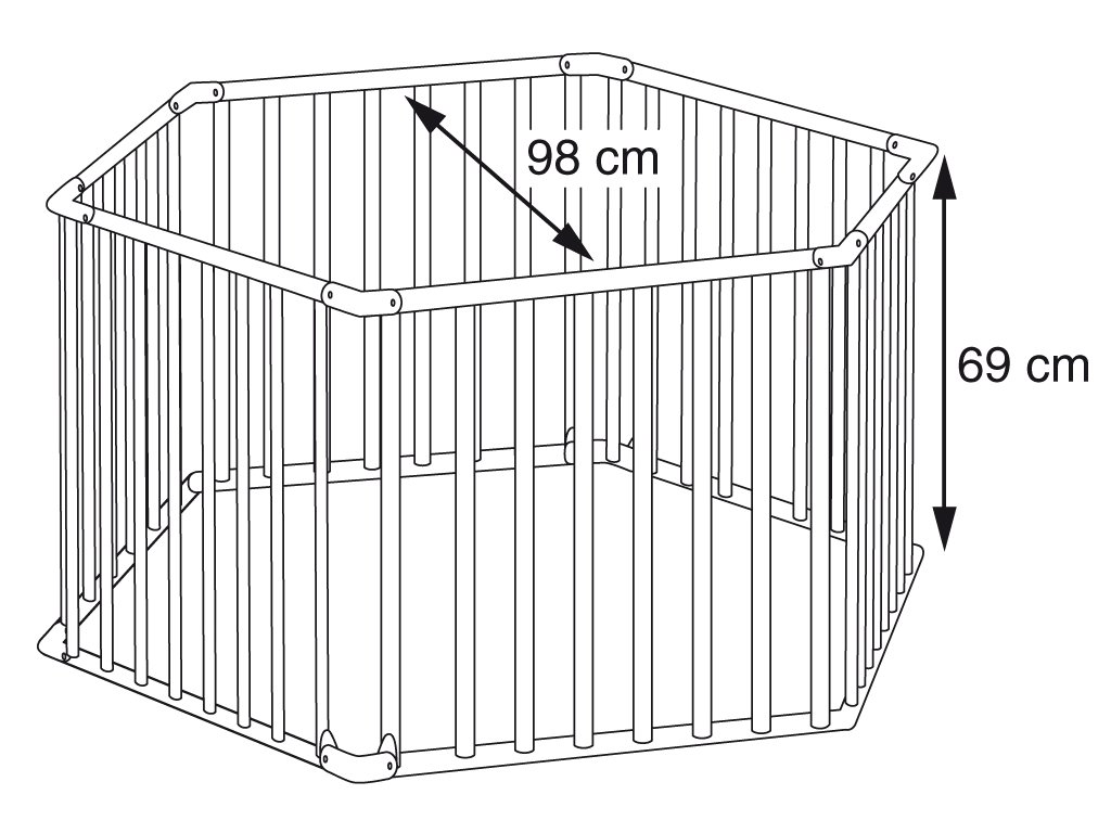 Rozměr ohrádky je 98 x 98 cm/ výška ohrádky je 69 cm