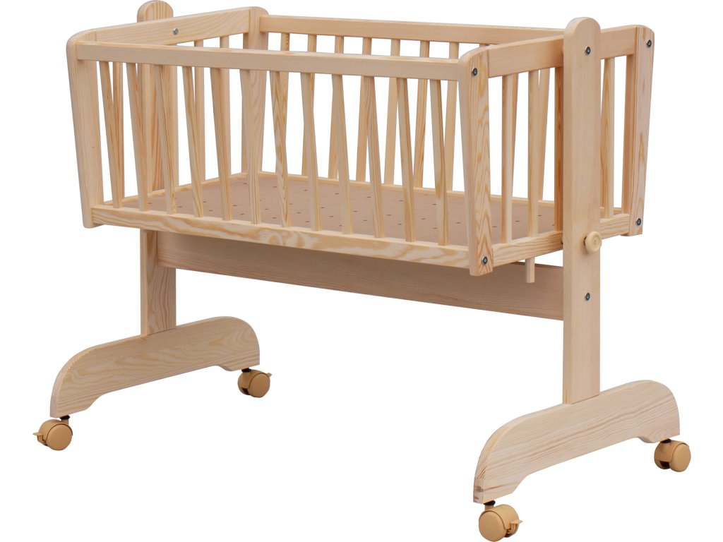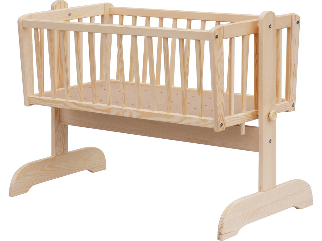 Krásná kolébka z borovicoveho dřeva je ideální pro usínání miminek.