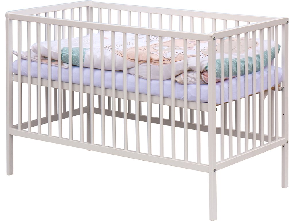 1. Dětská dřevěná postýlka 120x60 cm - bílá, masiv buk, 3 vyndavací příčky, 3 polohy roštu