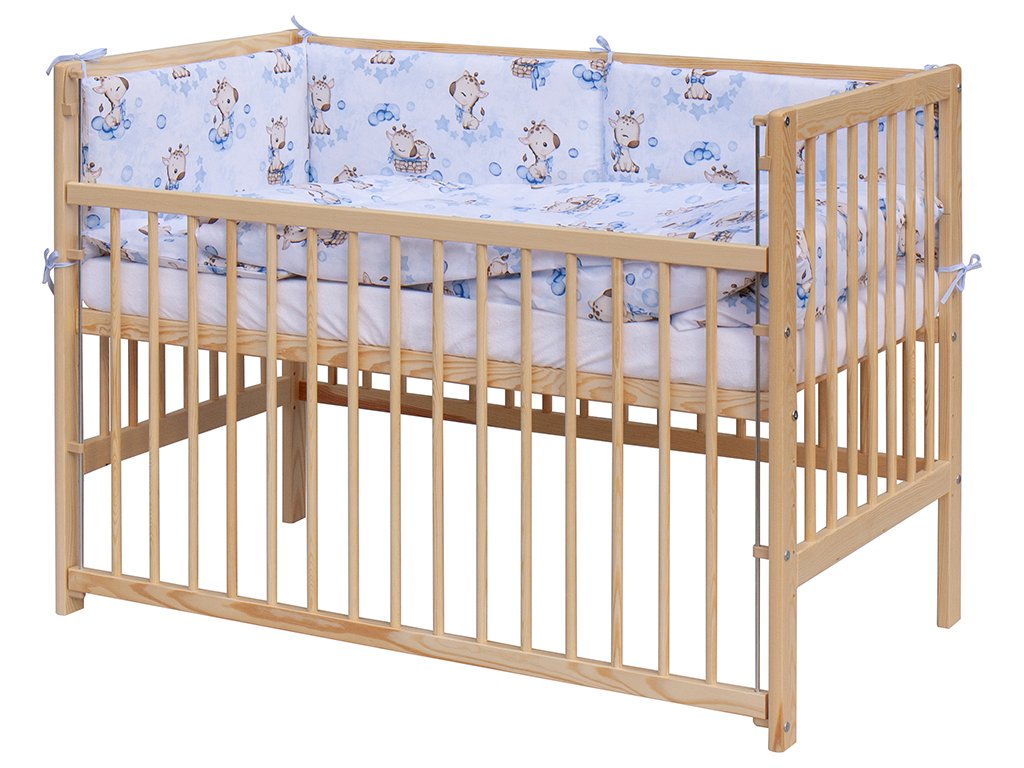 1. Dětská dřevěná postýlka 120 x 60 cm - přírodní, masiv borovice, stahovací bok, 6 poloh roštu