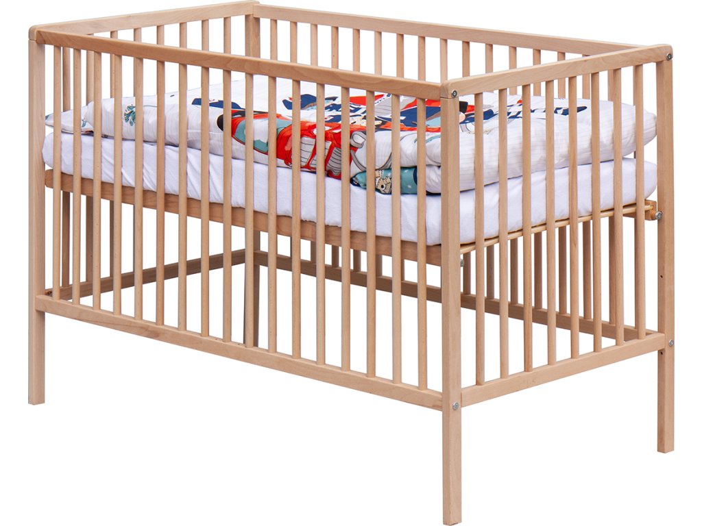 1. Dětská dřevěná postýlka 120 x 60 cm - přírodní, masiv borovice, 3 vyndavací příčky, 3 polohy roštu,