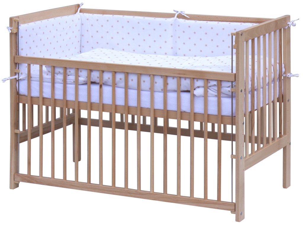 1. Dětská dřevěná postýlka 120x60 cm - přírodní, masiv buk, stahovací bok, 6 poloh roštu