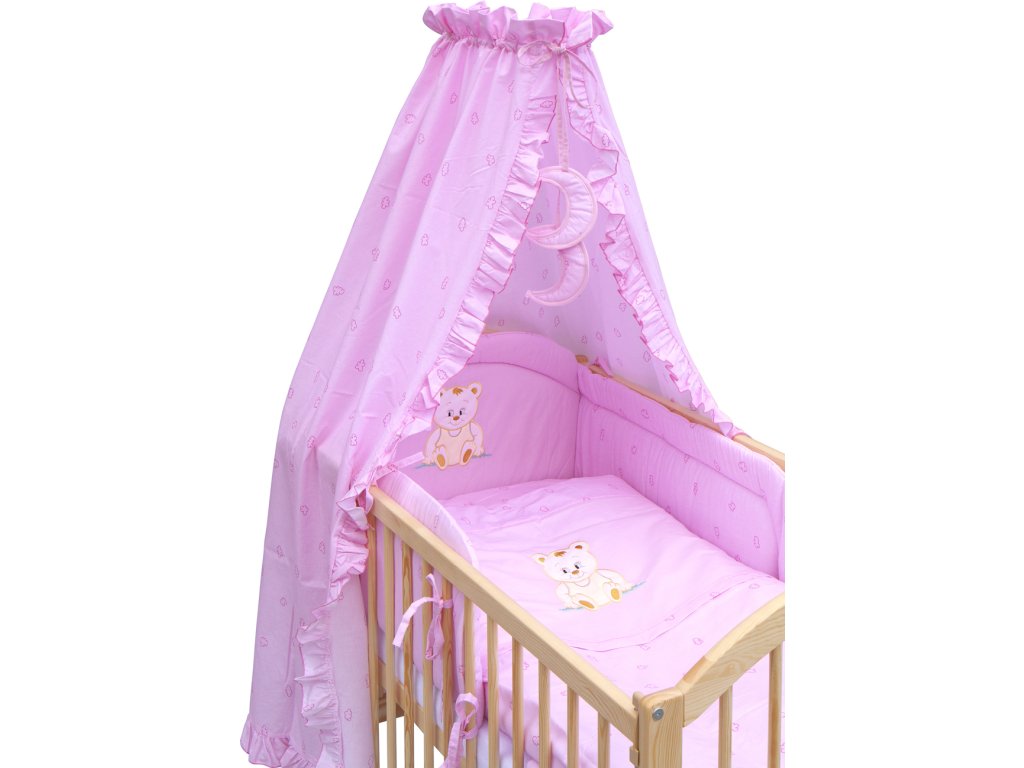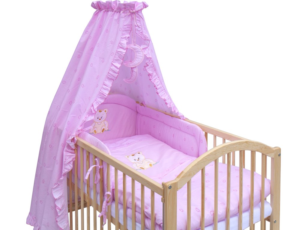 Dětská postýlka s kompletní výbavou Scarlett 120 x 60 cm - Méďa - růžová
