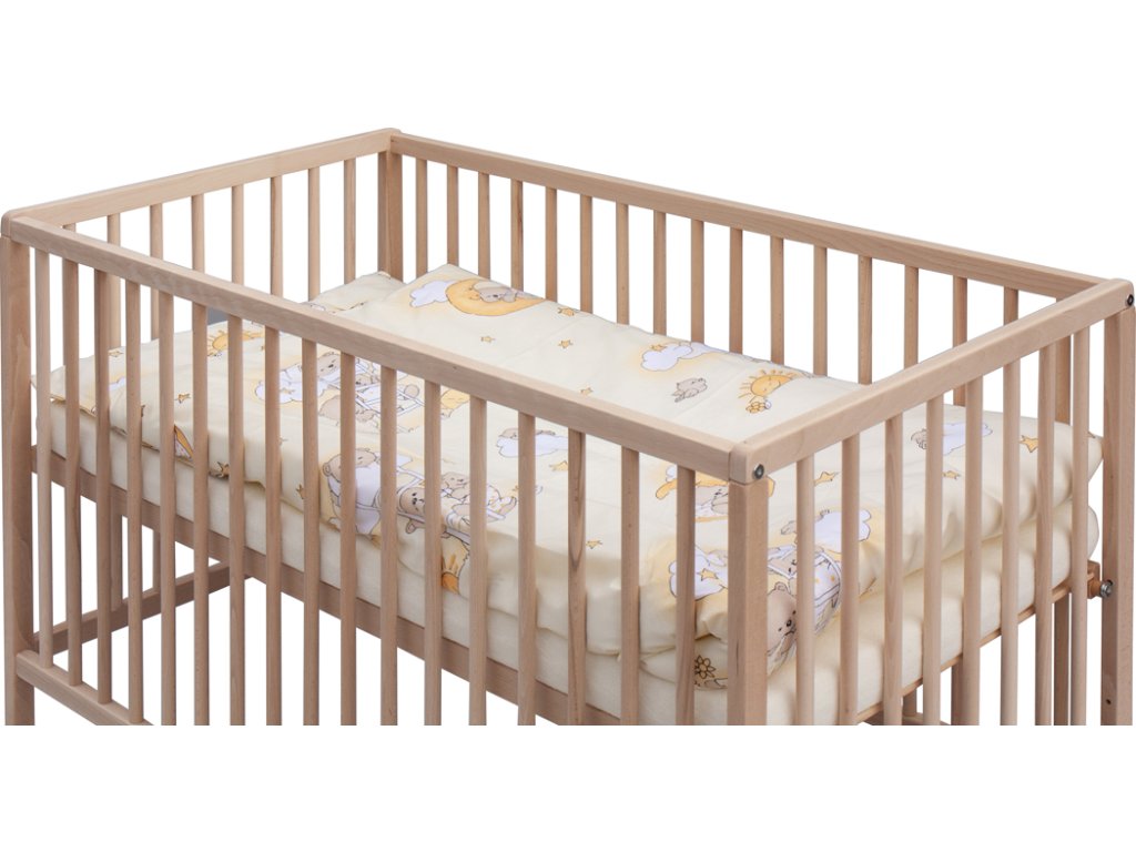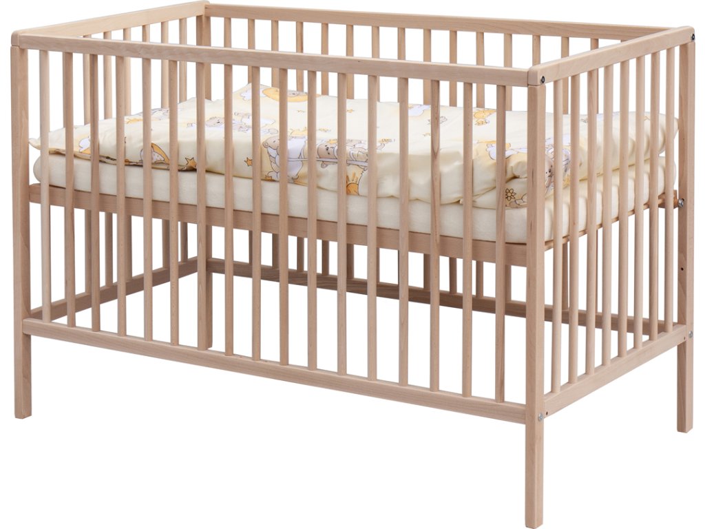 1. Dětská dřevěná postýlka 120 x 60 cm - přírodní, masiv buk, 3 vyndavací příčky, 2 polohy roštu