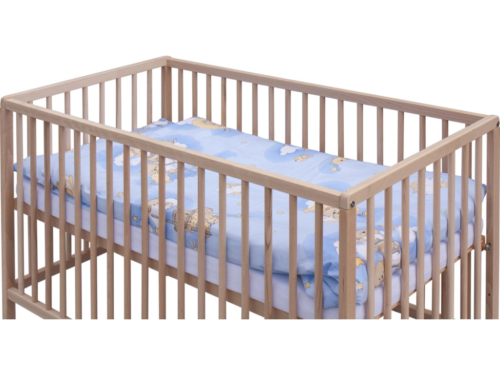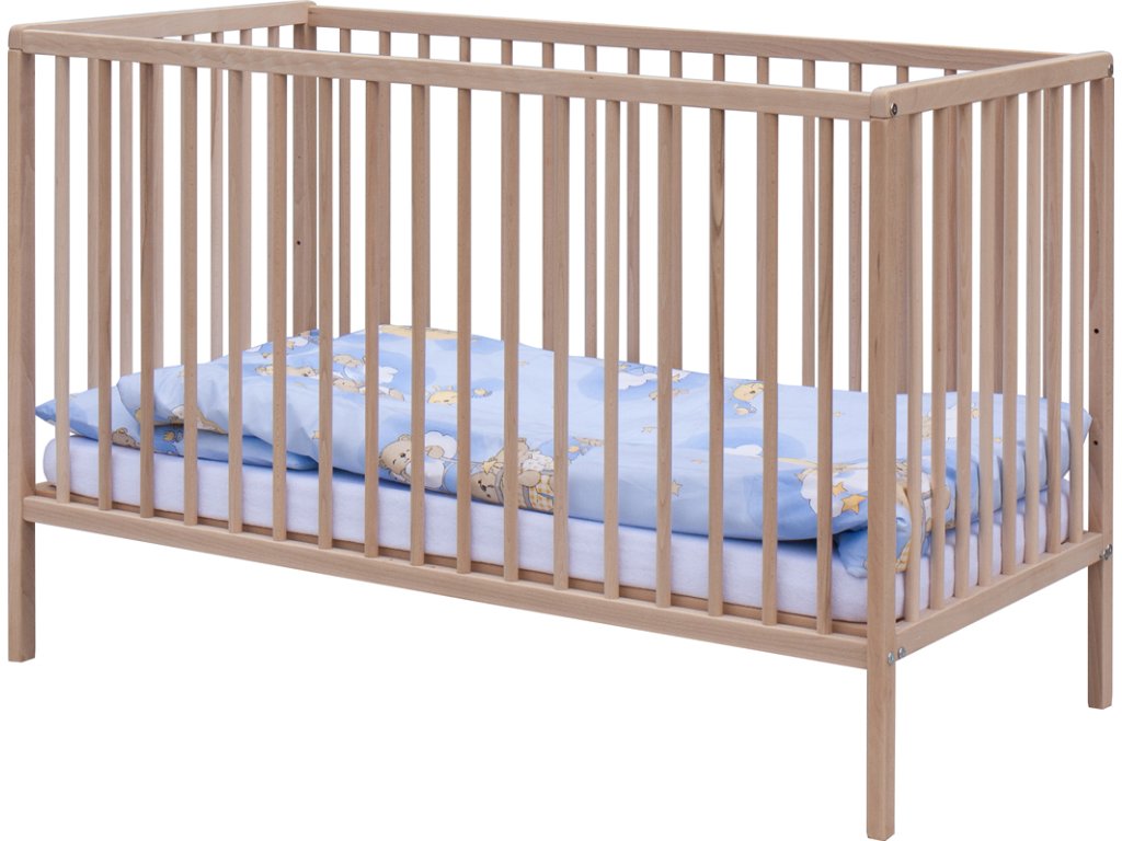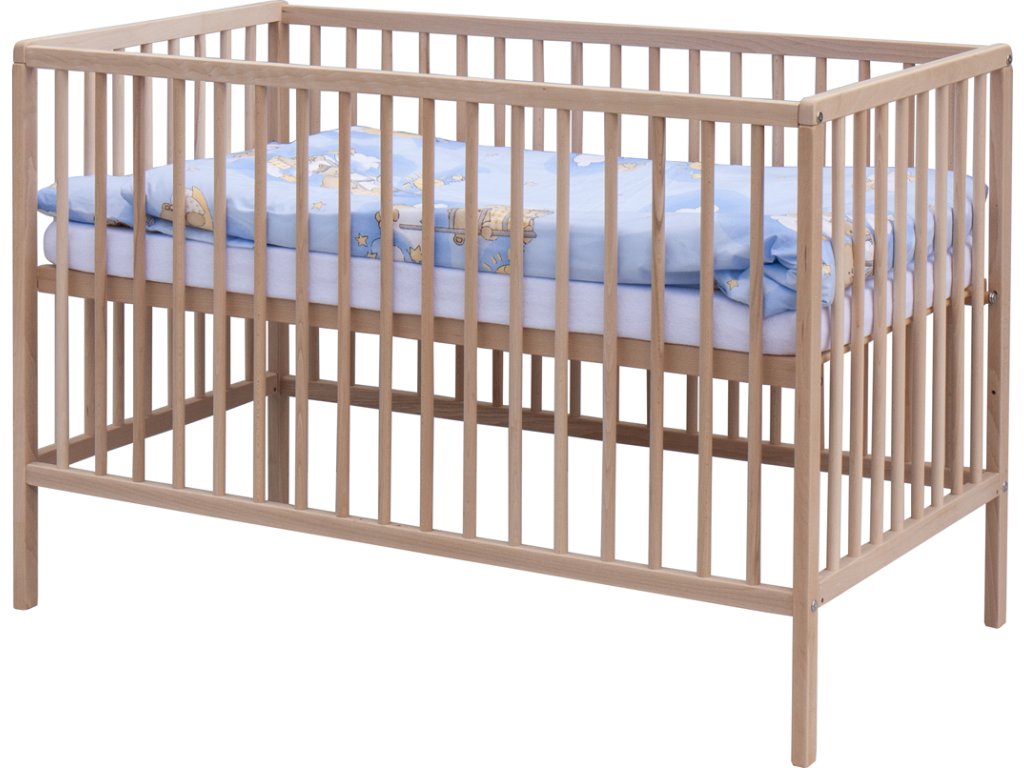 1. Dětská dřevěná postýlka 120 x 60 cm - přírodní, masiv buk, 3 vyndavací příčky, 2 polohy roštu