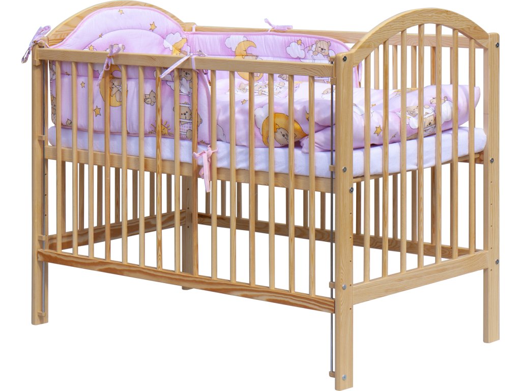 1. Dětská dřevěná postýlka 120 x 60 cm - přírodní, masiv borovice, stahovací bok, 6 poloh roštu