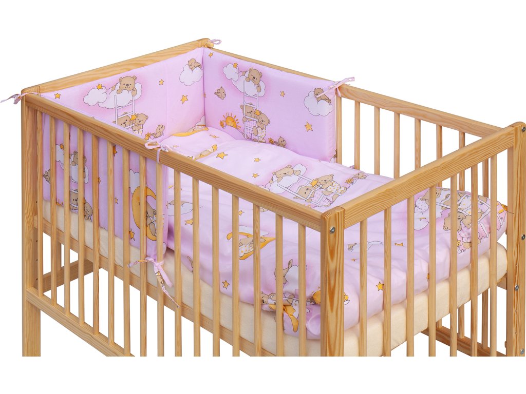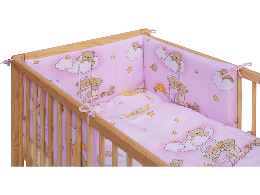 Dětská postýlka s kompletní výbavou Scarlett 120 x 60 cm - Mráček - růžová
