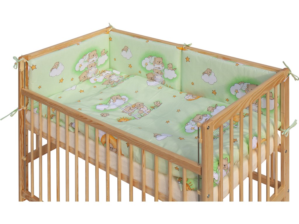 Dětská postýlka s kompletní výbavou Scarlett 120 x 60 cm - Mráček - zelená