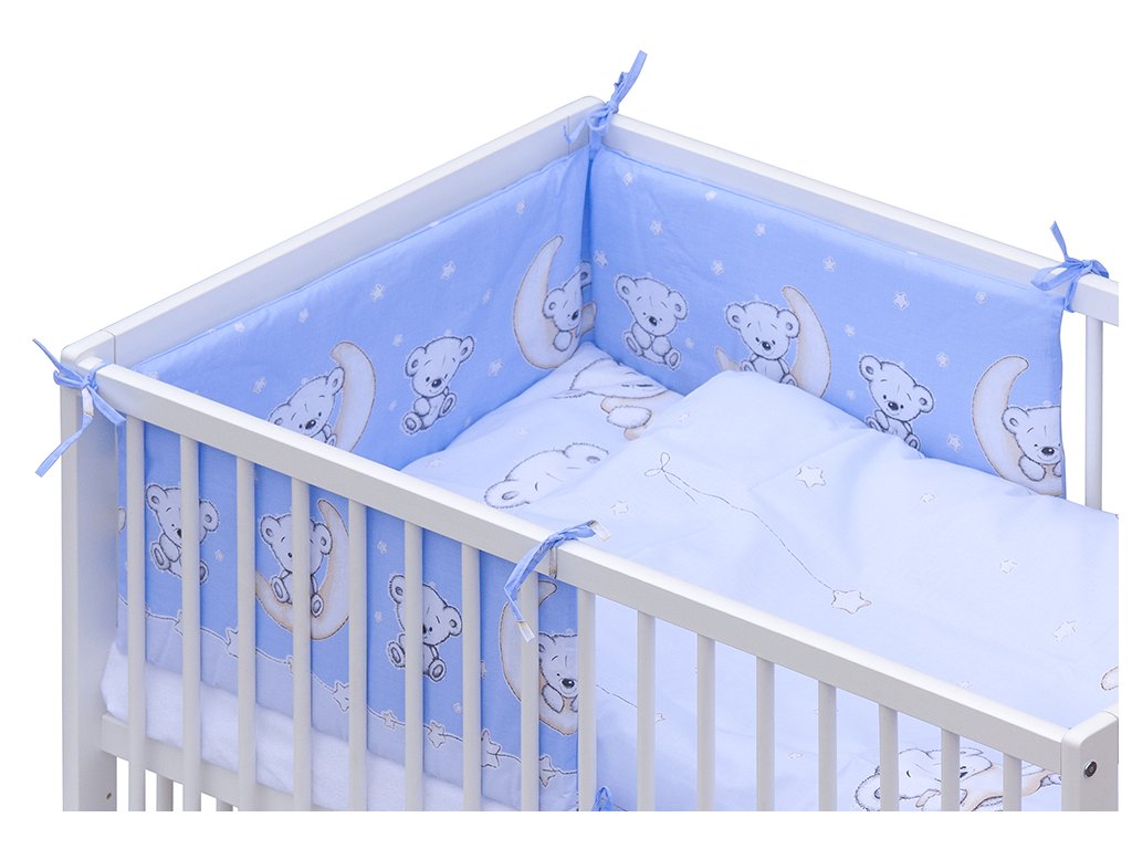 Dětská postýlka s kompletní soupravou povlečení a doplňků Toro - modrá