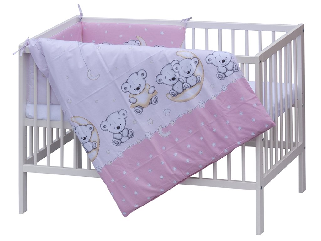 Dětská postýlka s kompletní soupravou povlečení a doplňků Toro - růžová