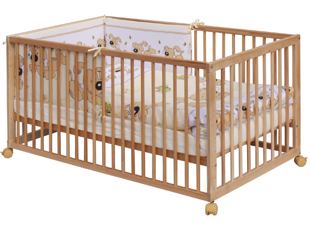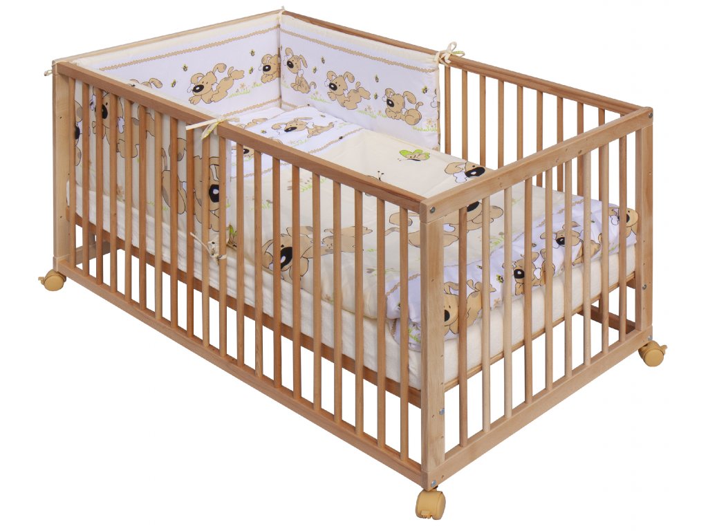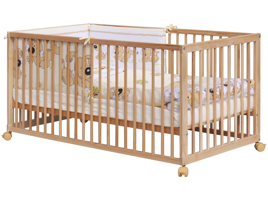 1. Dětská dřevěná postýlka 140x70 cm - přírodní, masiv buk, vyndavací příčky, 5-poloh roštu