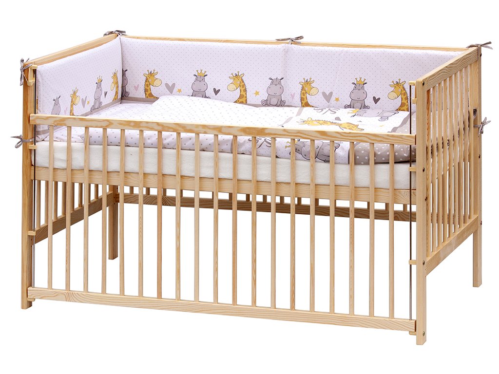 1 . Dětská dřevěná postýlka 140x70 cm - přírodní, masiv borovice, stahovací bok, 6 poloh roštu