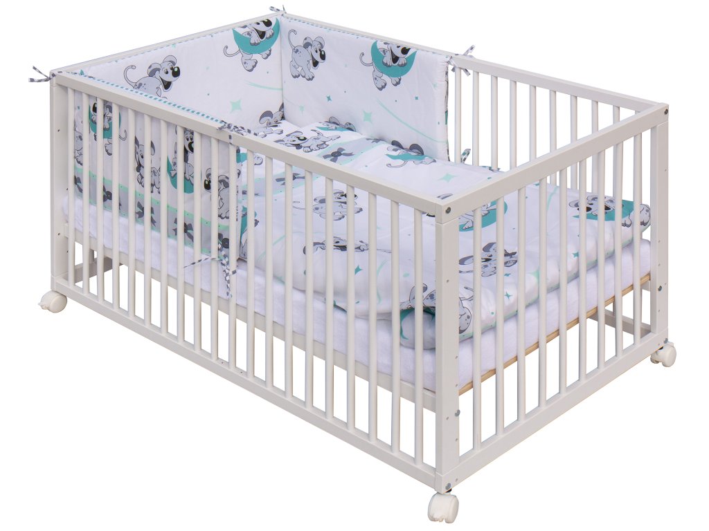 Dětská postýlka s kompletní soupravou povlečení a doplňků Tigi - tyrkysová