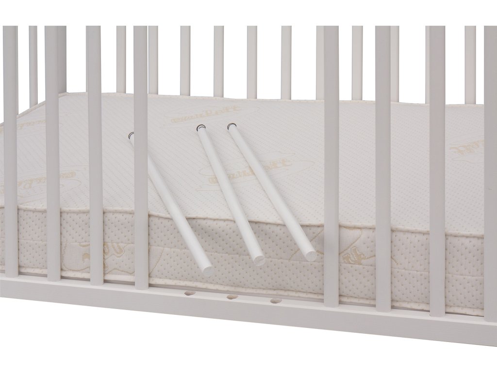 Kolečka ani matrace nejsou součástí postýlky, ale je možné si je objednat, dle vašich potřeb, z naší nabídky.