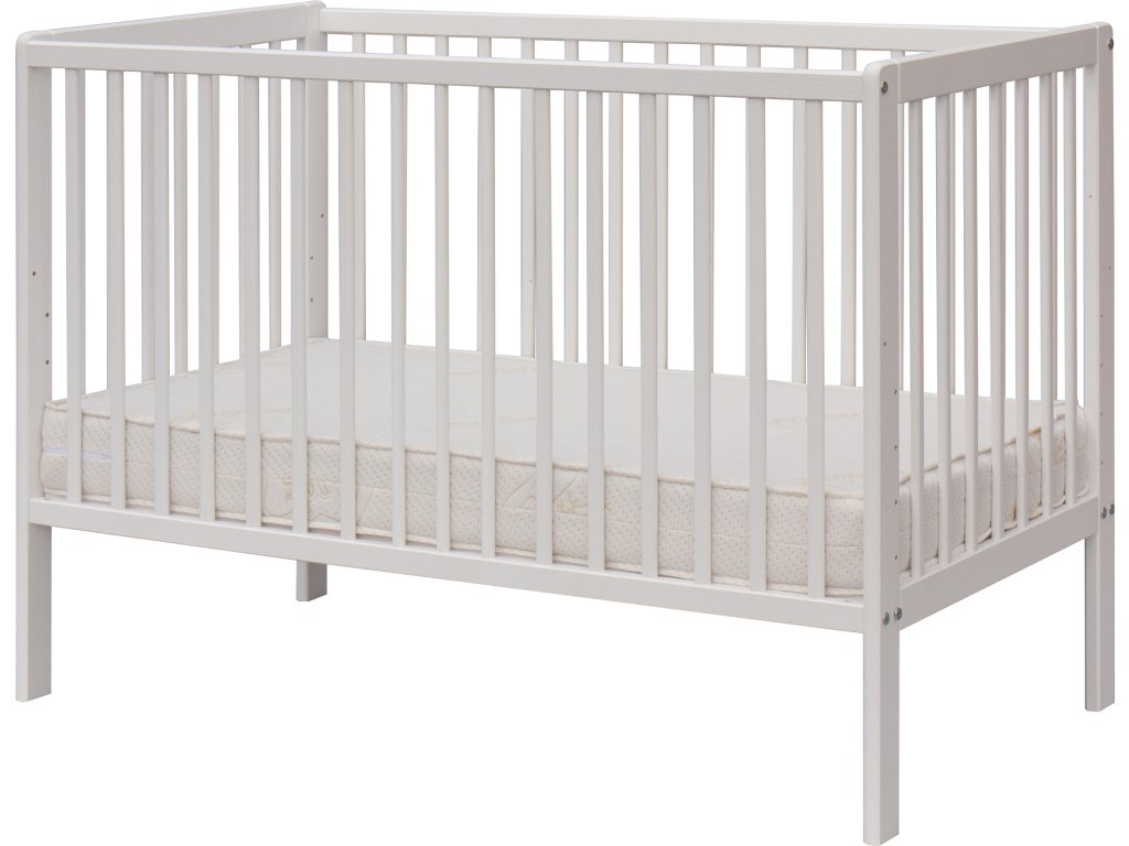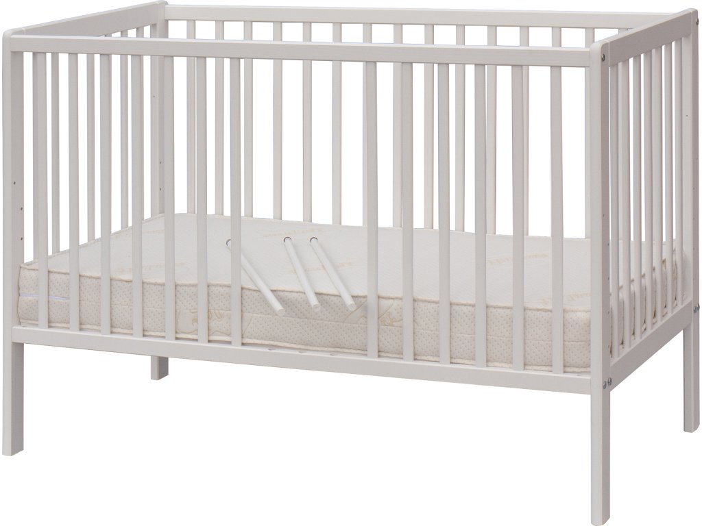 Dětská postýlka Scarlett DOMINIK s vyndavacími příčkami borovice - bílá 120 x 60 cm
