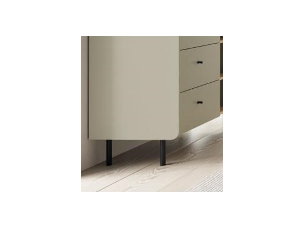 Nábytek Cosmo se vyrábí v moderním stylu. Úchytky jsou nahrazeny drážkami, které zvyšují trvanlivost a odolnost nábytku.