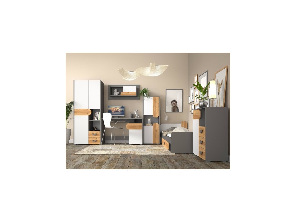Nábytek Carini zaujme na první pohled svým neobyčejně moderním vzhledem. Zajímavostí jsou zaoblené prvky na nábytku, které nahrazují úchytky na části nábytku. Klasické úchytky jsou také atraktivní ve tvaru půlkruhu. Předností je kombinace barev, která je svěží a krásně zapadne do každého interiéru. Vaše děti určitě ocení propracované detaily nábytku a budou se zde cítit velmi dobře a bezpečně.