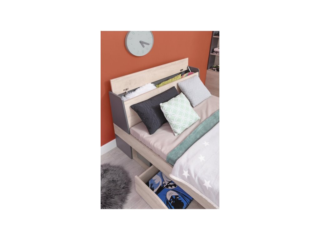 Postel má za hlavou úložný box a dole 2 zásuvky.