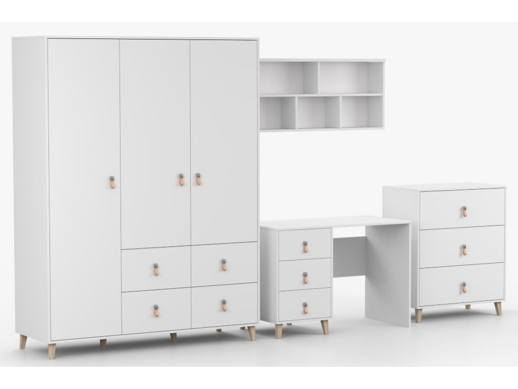 Kolekce Figo ve skandinávském stylu krásně rozzáří celý pokoj. Zajímavostí jsou kožená poutka místo úchytek a vyšší nožky, které jsou v dnešní době velmi trendy. Díky výběru dílů sestavíte pokojíček přesně podle potřeb, představ a přání Vašich ratolestí. Jednoduchý styl nábytku zajistí dětem bezpečí, pohodlí a příjemné chvíle strávené při lenošení.