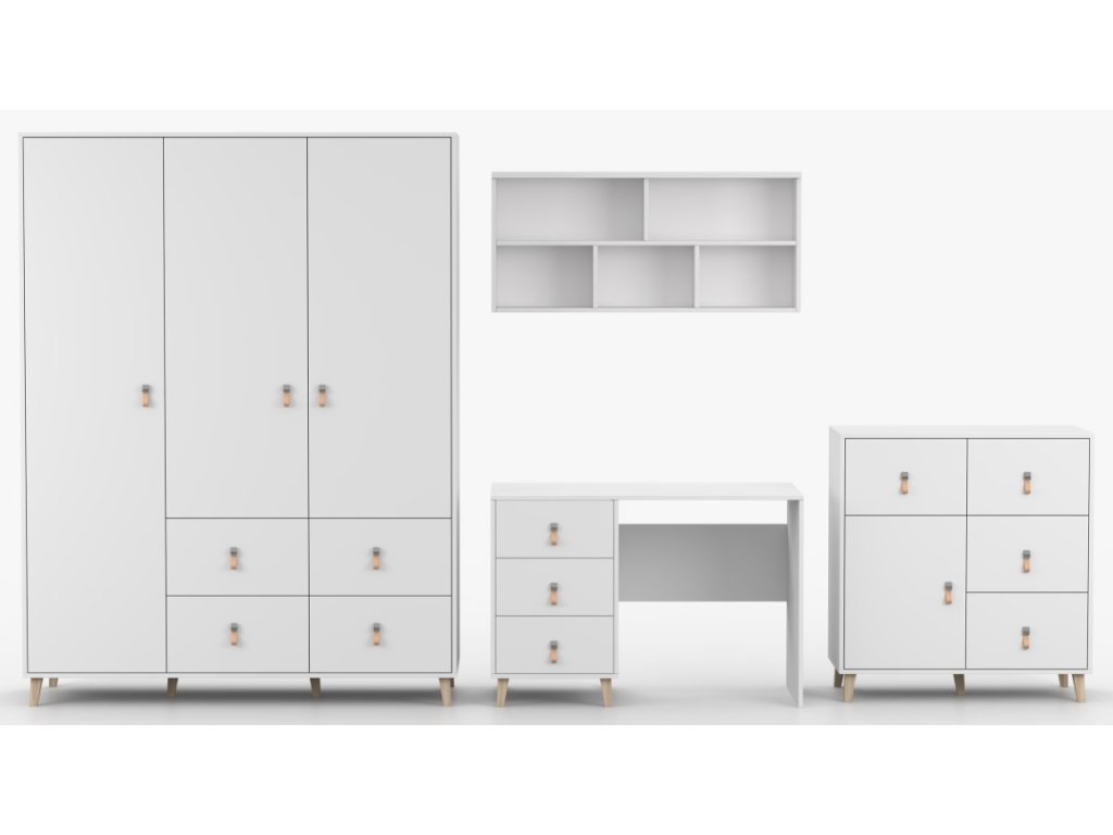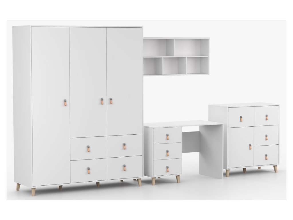 Kolekce Figo ve skandinávském stylu krásně rozzáří celý pokoj. Zajímavostí jsou kožená poutka místo úchytek a vyšší nožky, které jsou v dnešní době velmi trendy. Díky výběru dílů sestavíte pokojíček přesně podle potřeb, představ a přání Vašich ratolestí. Jednoduchý styl nábytku zajistí dětem bezpečí, pohodlí a příjemné chvíle strávené při lenošení.