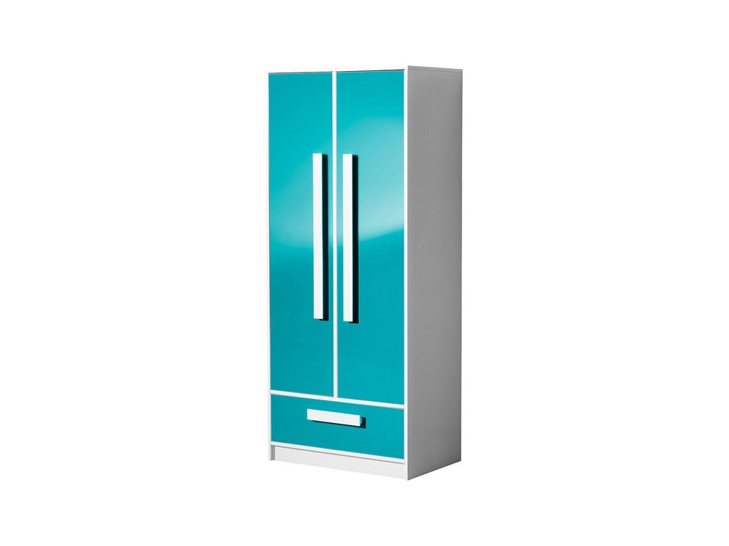 korpus bílý + dvířka tyrkys lesk
