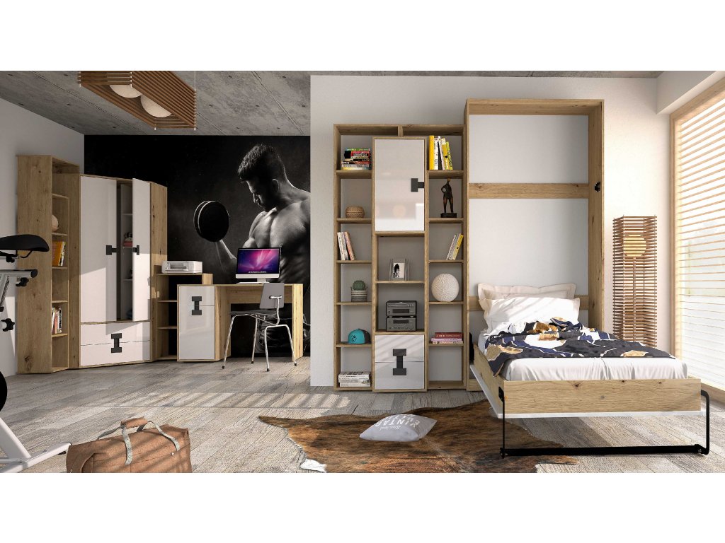 1x Postel výklopná vertikálně vč. roštu 90x200 Index 19 - 104 x 220 x 40 cm