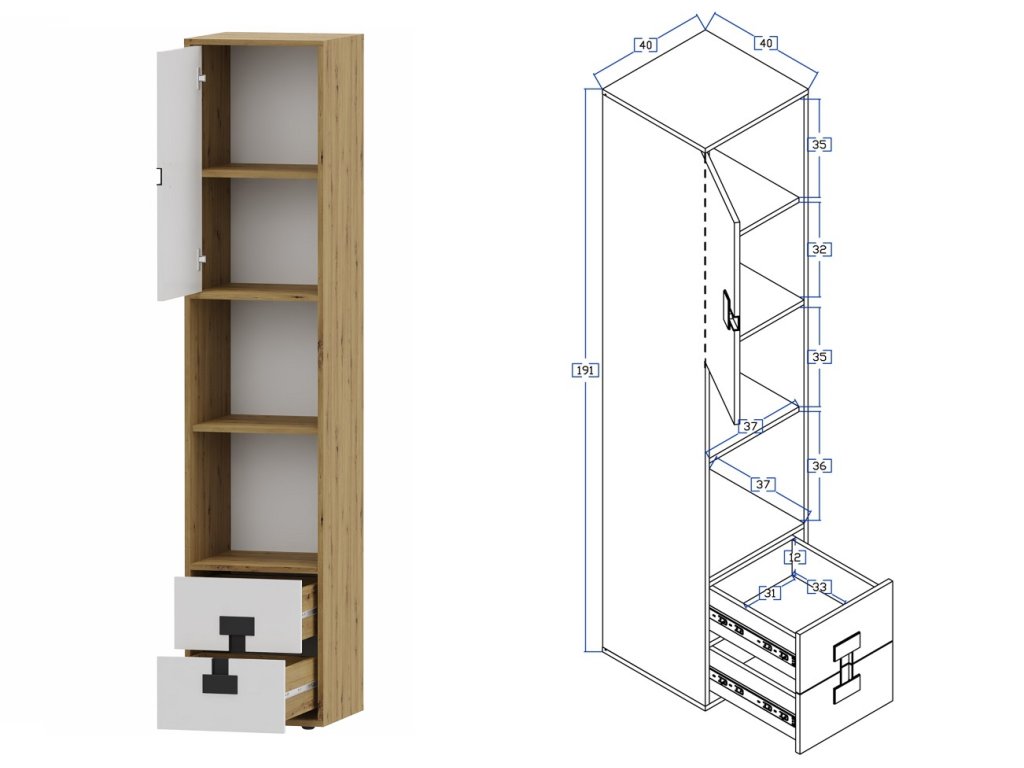 1x Regál úzký Index 06 - 40 x 191 x 40 cm