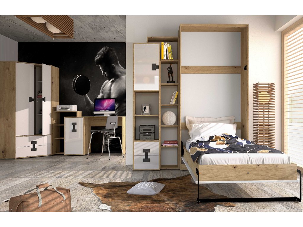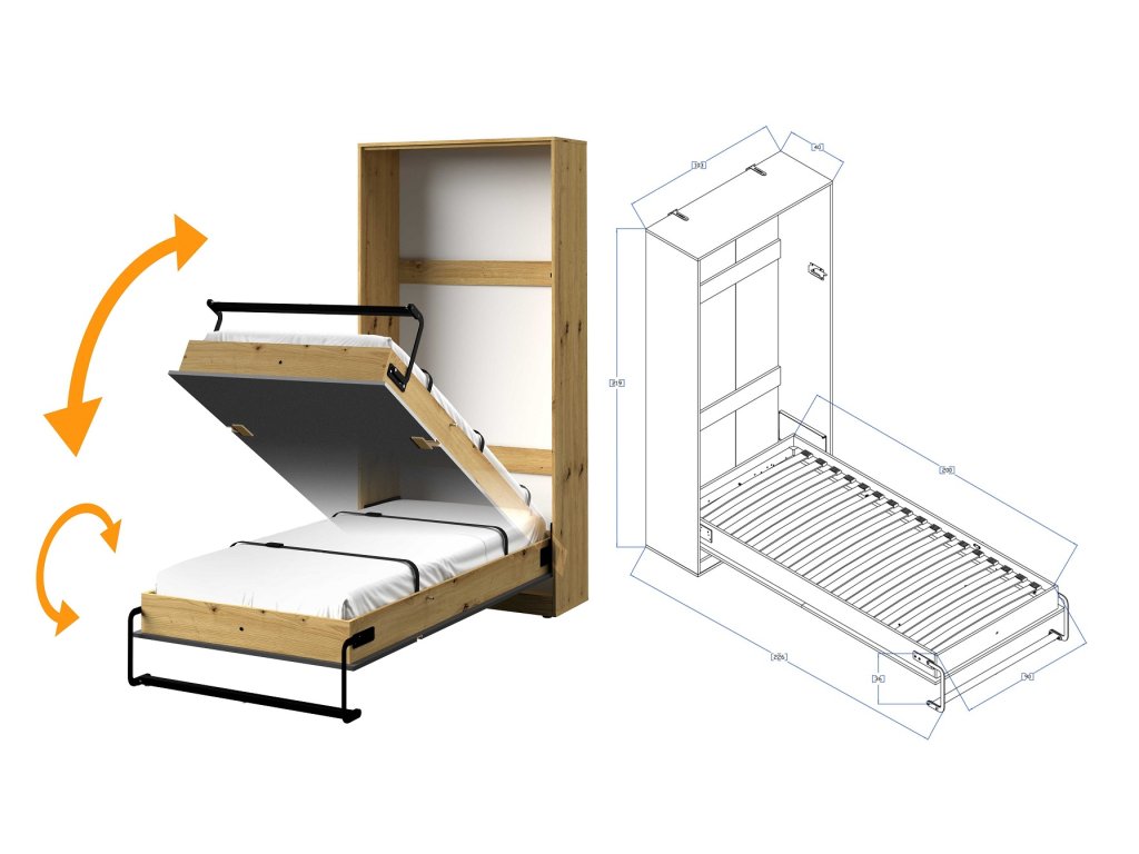 1x Postel výklopná vertikálně vč. roštu 90x200 Index 19 - 104 x 220 x 40 cm